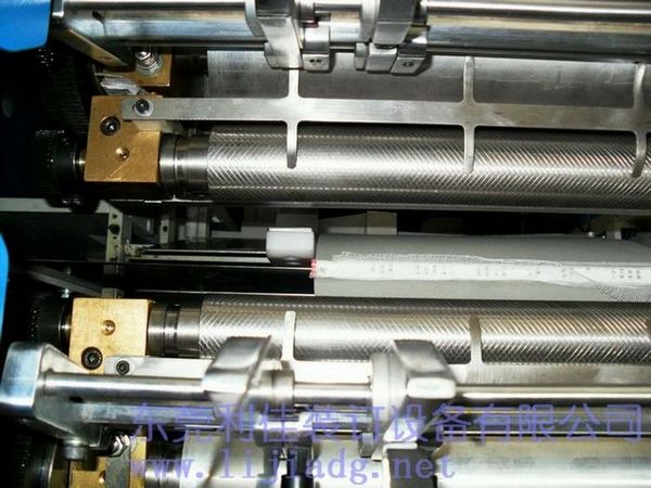 后自動(dòng)將書(shū)芯帶入機(jī)器內(nèi)由刀板帶動(dòng)書(shū)芯上升,經(jīng)過(guò)膠滾自動(dòng)涂